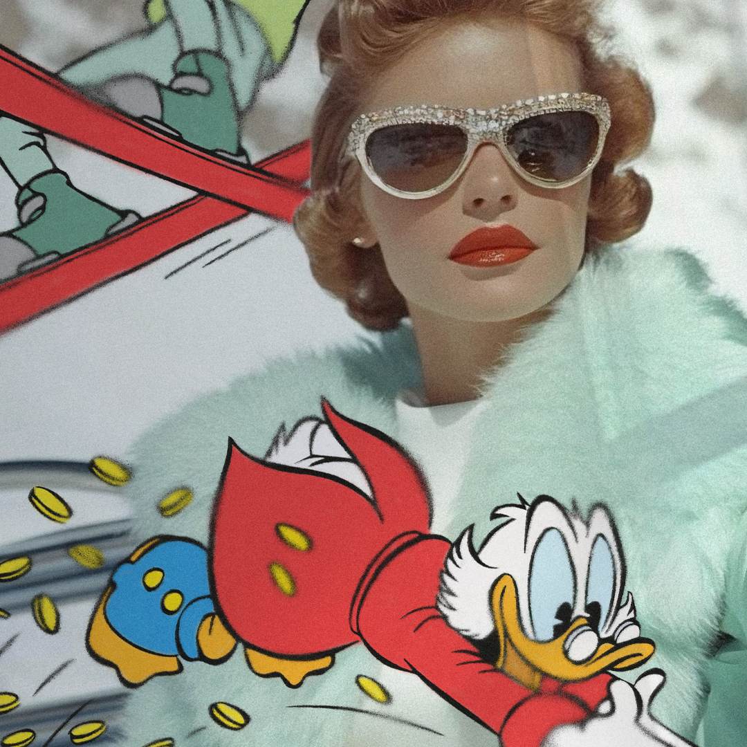 When 80s St. Moritz glamorous lifestyle meets classic cartoons, creating a nostalgic visual universe inspired by après-ski culture.
