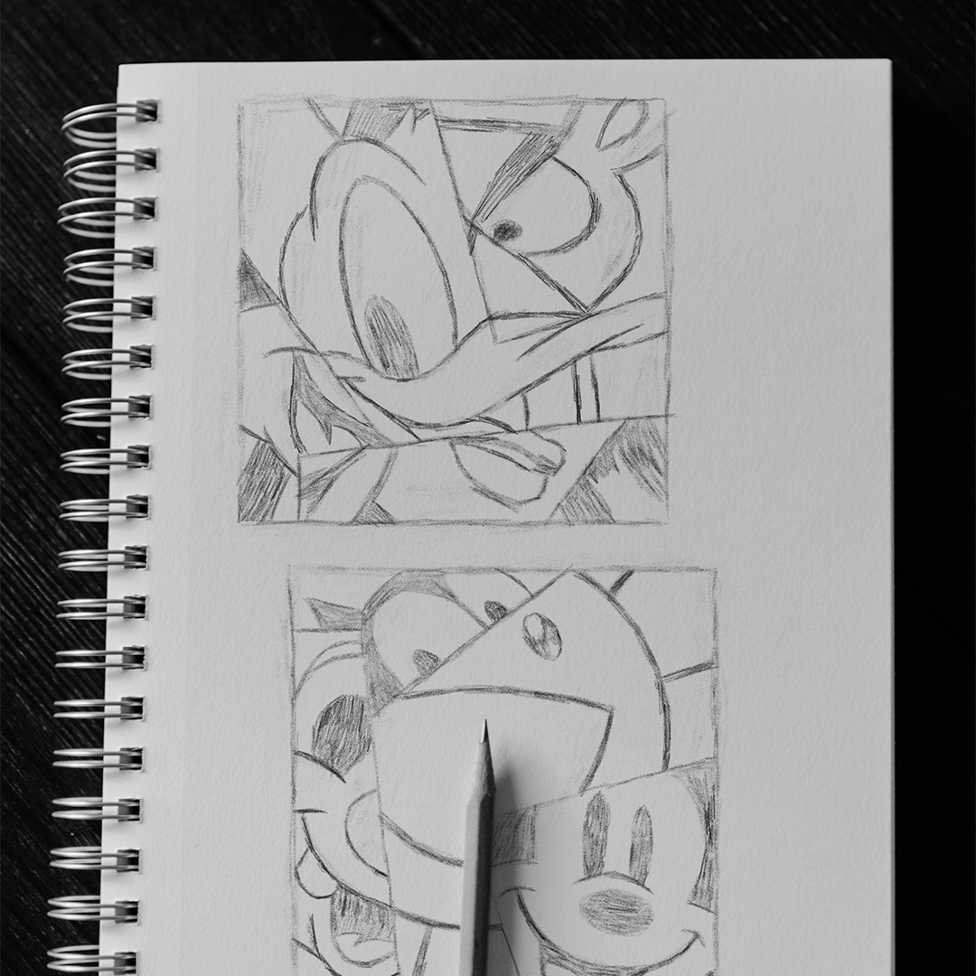 A recreation of iconic cartoon expressions shaped by bold cutouts, layers, and a playful visual language.